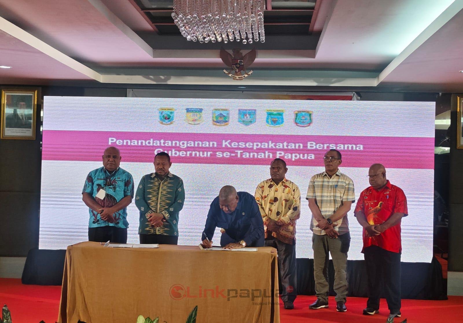 Penandatanganan ini dilakukan Gubernur Papua Barat Dominggus Mandacan, Gubernur Papua Barat Daya Elisa Kambu, dan Gubernur Papua Mathius D. Fakhiri. Turut menandatangani pula Gubernur Papua Tengah Meki Fritz Nawipa, Gubernur Papua Pegunungan John Tabo, serta Gubernur Papua Selatan Apolo Safanpo.