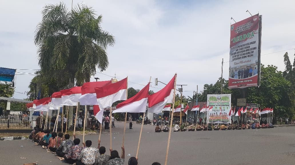 Aksi demo ini menampilkan calon siswa Bintara Polri membentangkan bendera merah putih dengan membentuk formasi berbentuk huruf U dipandu mobil komando yang di dalamnya terdapat aktivis HMI, GMNI, dan PMII. Aksi tersebut menyebabkan akses Jalan Yos Sudarso tidak bisa dilintasi kendaraan. (LP2/red)