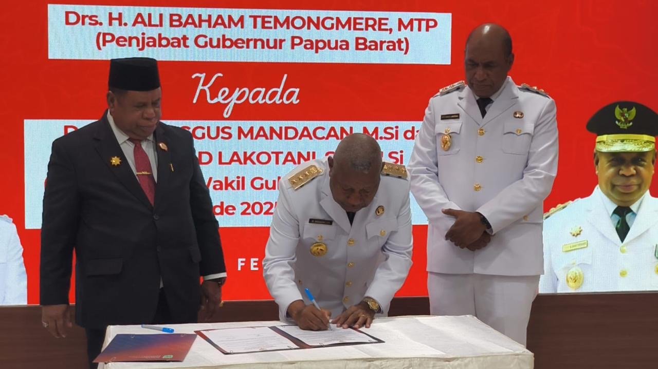 JAKARTA, Linkpapua.com– Dominggus Mandacan resmi menjabat Gubernur Papua Barat. Selanjunya, Ali Baham Temongmere yang sebelumnya menjabat Pj Gubernur akan kembali menjadi Sekda Papua Barat.