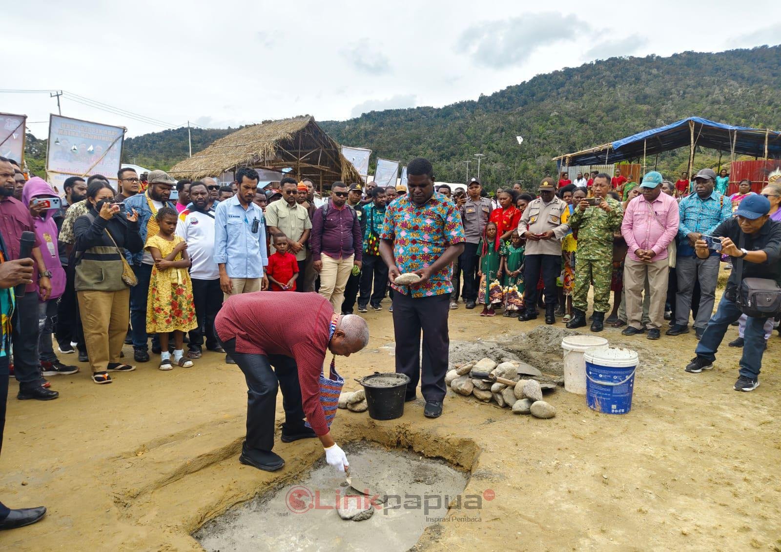 PEGAF, LinkPapua.id – Gubernur Papua Barat Dominggus Mandacan menghadiri peletakan batu pertama pembangunan gedung gereja baru jemaat GPKAI Eklesia Ullong di Kampung Imbai, Distrik Ullong, Kabupaten Pegunungan Arfak (Pegaf), Sabtu (14/3/2026). Dalam kesempatan itu, Dominggus turut menyerahkan bantuan 300 sak semen dan Rp10 juta untuk mendukung pembangunan gereja.