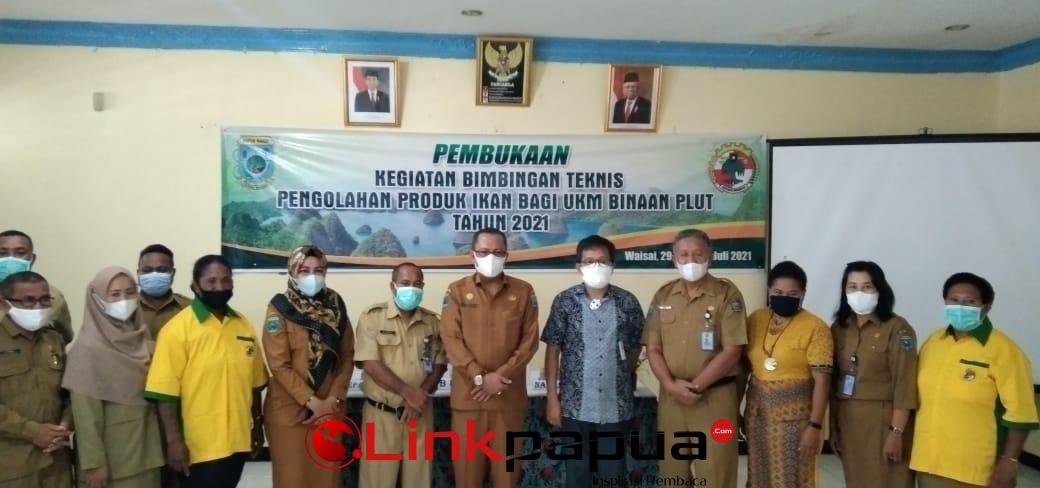 WAISAI, Linkpapua.com- Pemerintah Provinsi Papua barat melalui Dinas Koperasi Usaha Kecil dan Menengah (Dikop UKM), menggelar bimbingan teknis (bimtek) pengolahan produk ikan bagi UKM binaan Pusat Layanan Usaha Terpadu (PLUT), Selasa (29/6/2021).
