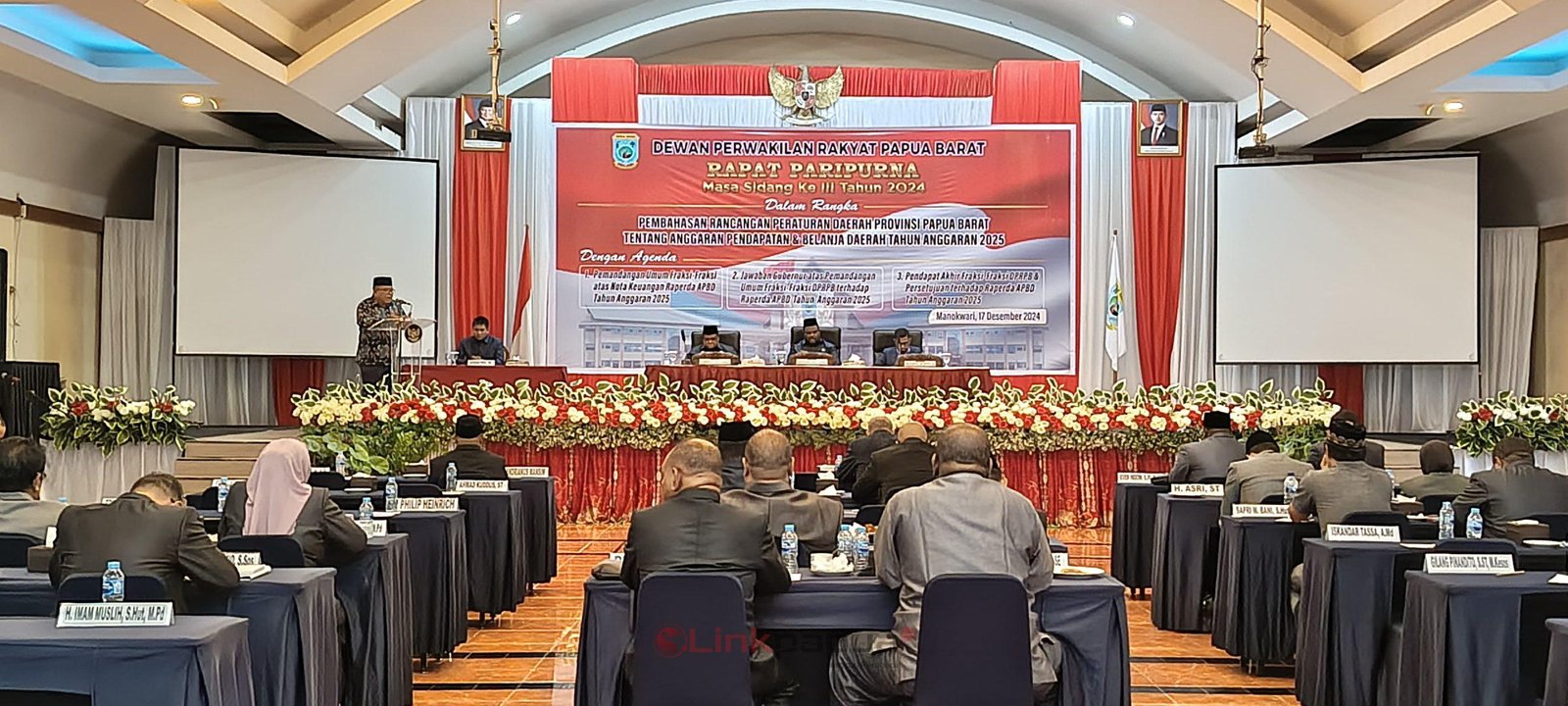MANOKWARI,Linkpapua.com – Gabungan Fraksi DPR Papua Barat menyodorkan 29 catatan atas nota keuangan Ranperda APBD 2025 dalam rapat paripurna yang digelar di Aston Niu Hotel Manokwari, Selasa (17/12/2024). Dalam 29 catatan yang disodorkan, Gabungan Fraksi menilai pembangunan infrastruktur dan efisiensi anggaran masih menjadi PR prioritas.