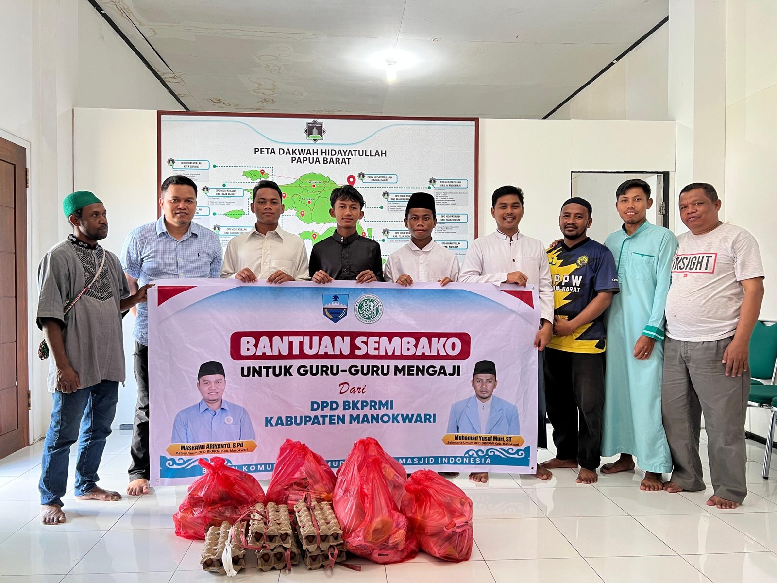 “Guru mengaji adalah ujung tombak dalam membentuk karakter anak-anak agar tumbuh menjadi pribadi yang cerdas, santun, dan tangguh. Bantuan ini sebagai bentuk penghargaan atas kesabaran dan keuletan mereka mendidik anak-anak kita agar fasih membaca Alqur’an,” ujar Ketua DPD BKPRMI Manokwari Masrawi Aryanto.
