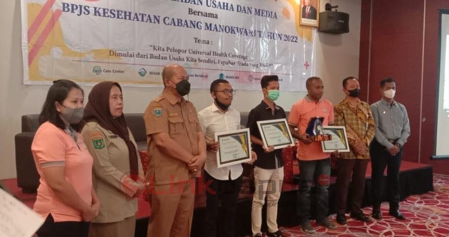 MANOKWARI, Linkpapua.com – Badan Penyelenggara Jaminan Sosial (BPJS) Kesehatan Cabang Manokwari memberikan penghargaan ke tiga badan usaha terbaik dalam pendaftaran karyawannya sebagai peserta BPJS Kesehatan. Penyerahan berlangsung di sela-sela Gathering Badan Usaha dan Media, Senin (27/6/2022).