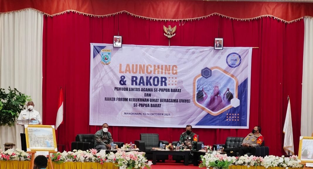 Demikian ungkap Gubernur Papua Barat, Dominggus Mandacan, saat membuka launching dan Rapat Koordinasi (Rakor) FKUB, Rabu sore (13/10/2021). Kegiatan yang digelar di Hotel Valdos Manokwari itu, dihadiri pula Panglima Kodam (Pangdam) XVIII/Kasuari, Mayor Jenderal TNI I Nyoman Cantiasa, dan Kapolda Papua Barat, Inspektur Jenderal Tornagogo Sihombing.