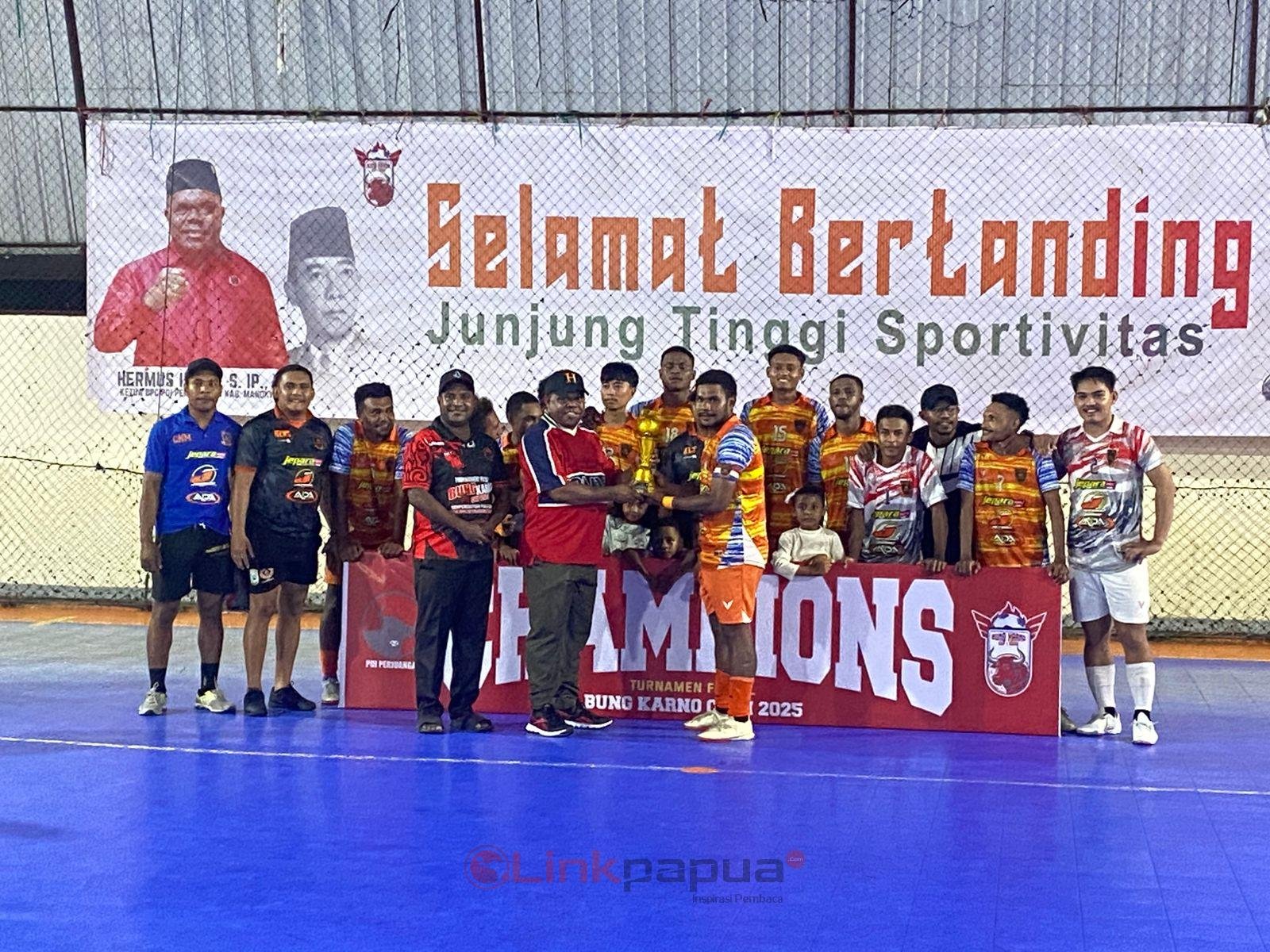 MANOKWARI, Linkpapua.com– Turnamen futsal Bung Karno Cup I 2025, yang digelar oleh DPC PDI Perjuangan Kabupaten Manokwari dalam rangka memperingati Bulan Bung Karno, resmi ditutup pada Sabtu (5/7/2025) malam.