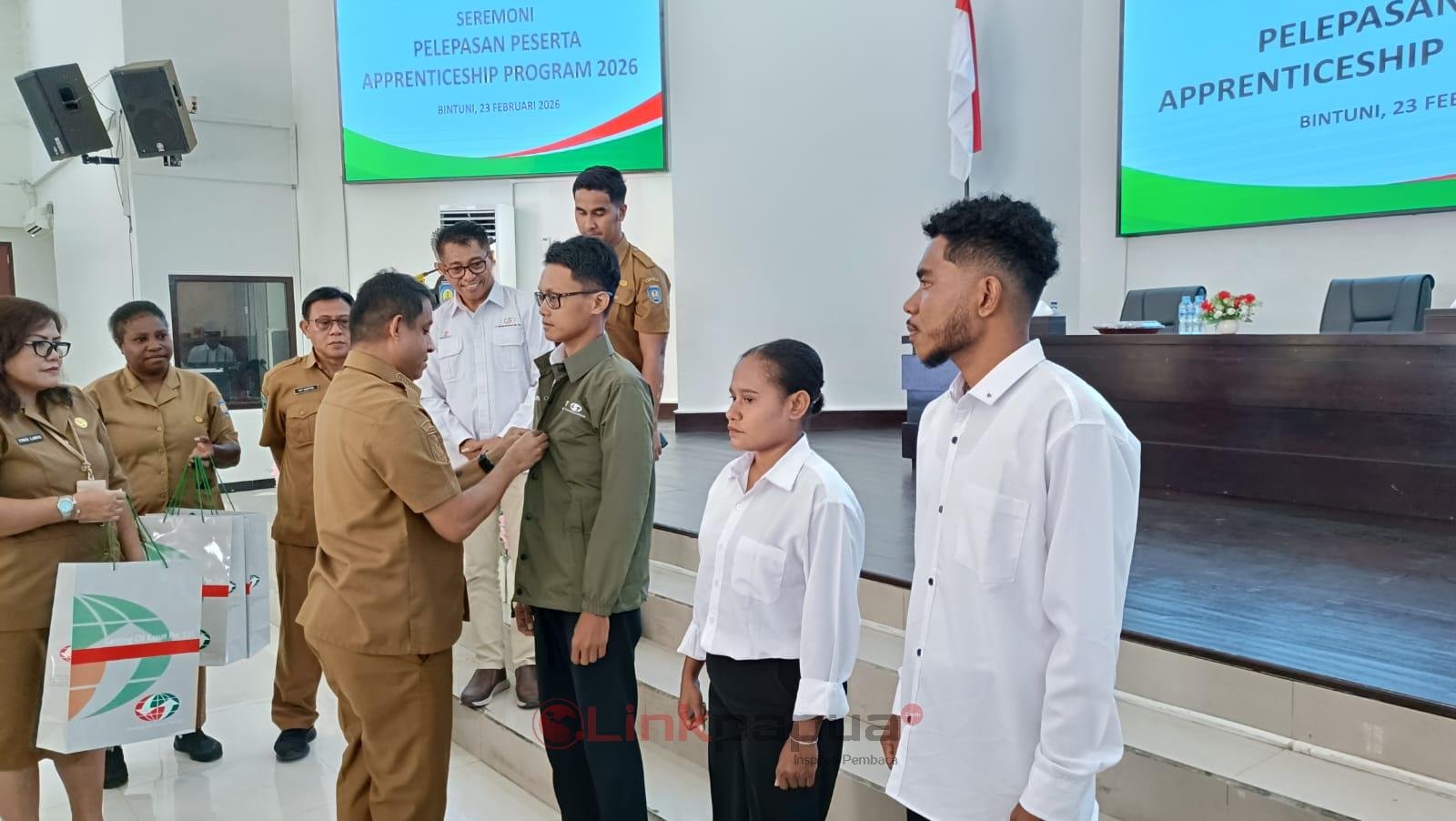 TELUK BINTUNI, LinkPapua.id – Bupati Teluk Bintuni Yohanis Manibuy melepas 15 putra-putri asli daerah untuk mengikuti apprenticeship program tahun 2026. Belasan peserta tersebut dikirim untuk menjalani pendidikan khusus di Pusat Pengembangan Sumber Daya Manusia Minyak dan Gas (PPSDM Migas) Cepu, Jawa Tengah.