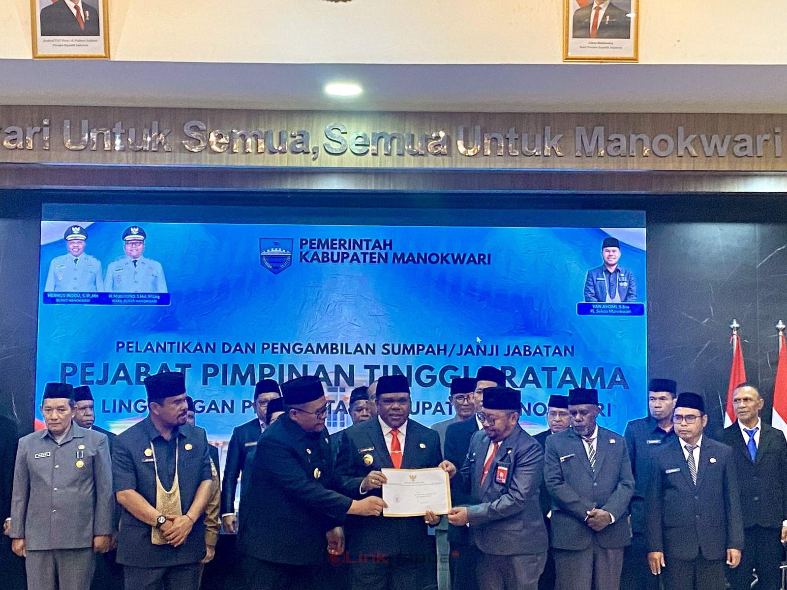 MANOKWARI, Linkpapua.id – Bupati Manokwari Hermus Indou melantik dan mengambil sumpah/janji jabatan pejabat pimpinan tinggi pratama di lingkungan pemerintah daerah ditegaskan bukan sekadar seremoni, melainkan bagian dari akselerasi kepemimpinan dan percepatan visi pembangunan.