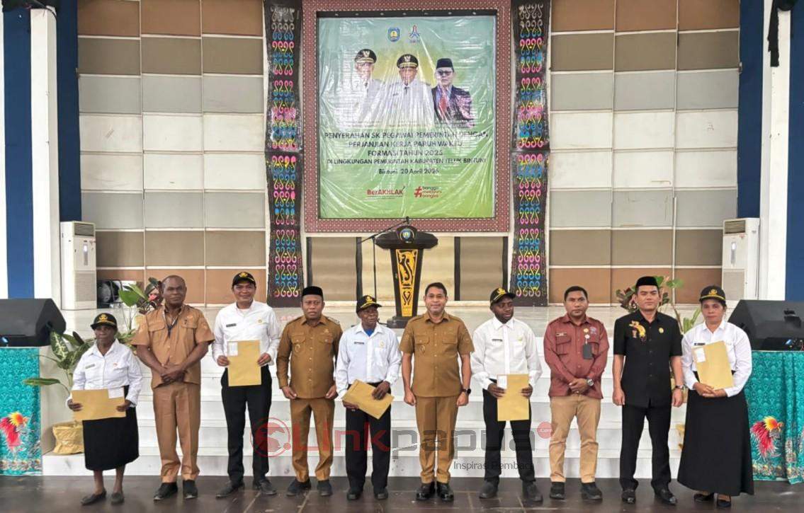 “Sebagai bagian dari komitmen nyata Pemkab Teluk Bintuni dalam penataan kepegawaian yang lebih baik, tertib, dan berkelanjutan, maka di hari ini sebanyak 1.054 orang tenaga honorer di lingkungan Pemkab Teluk Bintuni dapat menerima SK PPPK Paruh Waktu,” ujar Yohanis saat penyerahan SK di Gedung Serba Guna (GSG) Teluk Bintuni, Senin (20/4/2026).
