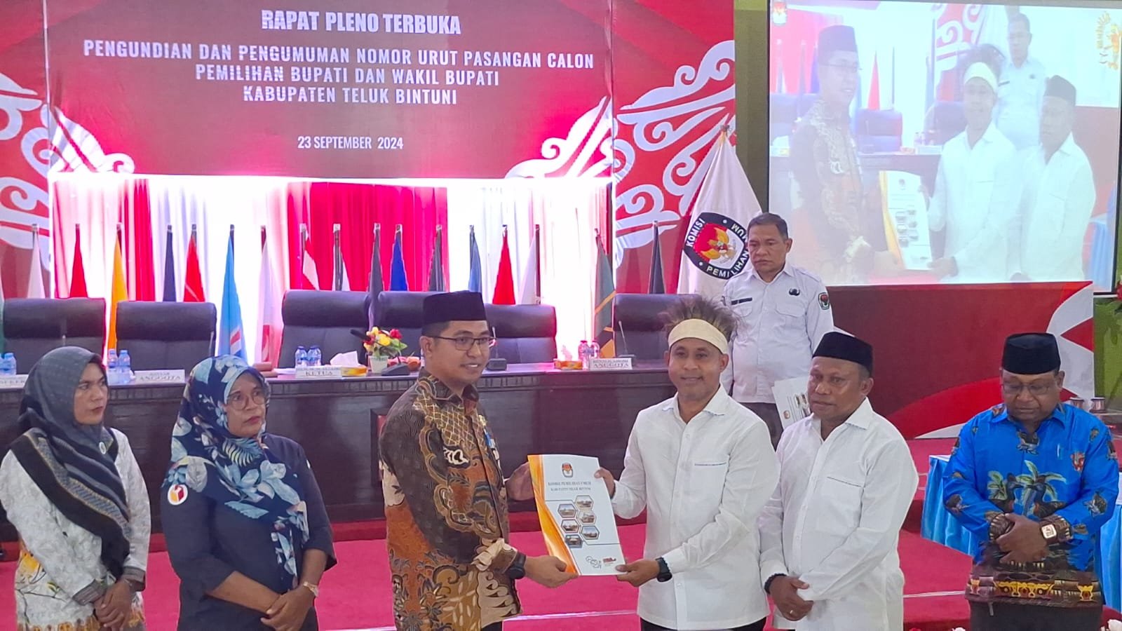 Hasil itu berdasarkan, Rapat pleno terbuka, pengundian dan pengumuman nomor urut pasangan calon pemilihan Bupati dan Wakil Bupati Kabupaten Teluk Bintuni, yang berlangsung di Aula KPU Bintuni, Tisay, pada senin (23/9/2024).