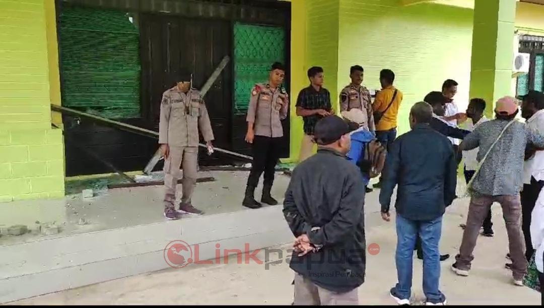 BINTUNI,LinkPapua.com-Sekelompok massa berunjuk rasa di kantor Badan Kepegawaian, Pendidikan dan Pelatihan (BKPP) Teluk Bintuni, Rabu (19/6/2024). Aksi ini berujung ricuh.