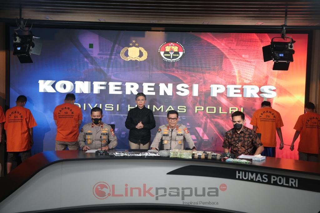 JAKARTA, Linkpapuabarat.com- Ada tampilan berbeda di konferensi pers pengungkapan kasus narkotika jaringan internasional yang digelar Divisi Humas Mabes Polri, Jumat (29/1/2021).