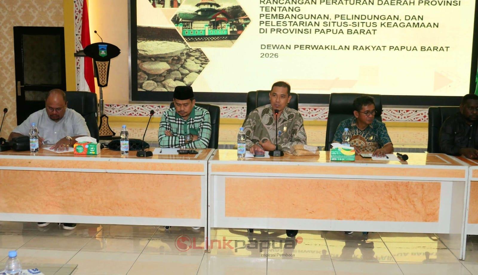 TELUK WONDAMA, LinkPapua.id – Dewan Perwakilan Rakyat Provinsi Papua Barat (DPRP PB) melalui Badan Pembentukan Peraturan Daerah (Bapemperda) menggelar konsultasi publik terkait Rancangan Peraturan Daerah Provinsi (Raperdasi) tentang Pembangunan, Perlindungan, dan Pelestarian Situs-Situs Keagamaan di Teluk Wondama. Dewan Adat Papua (DAP) memberikan catatan agar regulasi ini memberikan kepastian hukum terkait status tanah adat yang menjadi lokasi situs religi tersebut.