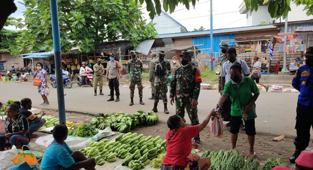 Edukasi PPKM Darurat, Koramil Manokwari Sasar Pasar Sanggeng
