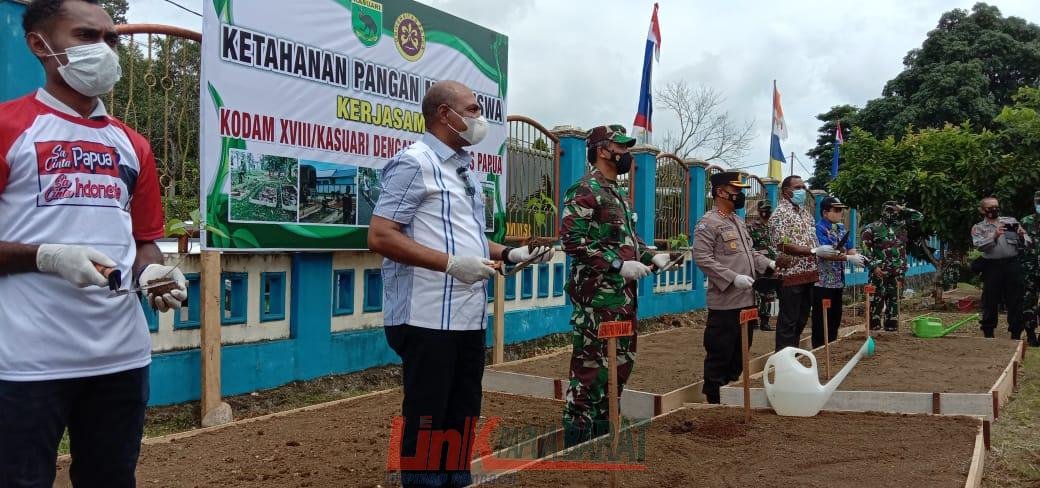 MANOKWARI, Linkpapuabarat.com – Kodam XVIII/Kasuari mencanangkan program ketahanan pangan mahasiswa dengan menggandeng Universitas Papua (UNIPA), Jumat ( 9/4/2021). Pencanangan dilaksanakan di Asrama Teluk Bintuni.