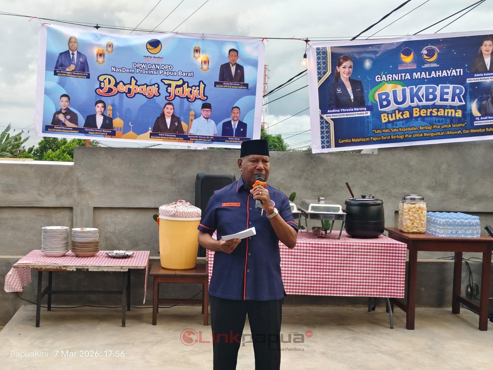 “Bulan Ramadan bukan hanya waktu untuk beribadah secara pribadi, tetapi juga momentum untuk mempererat tali silaturahmi dan memperkuat sinergi antara pemerintah dan elemen masyarakat, termasuk partai politik,” ujar Ketua DPW NasDem Papua Barat Dominggus Mandacan.