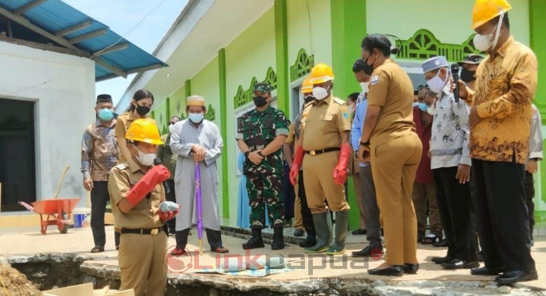 MANSEL, Linkpapua.com – Gubernur Papua Barat, Dominggus Mandacan, meletakkan batu pertama pembangunan gedung serbaguna dan tempat wudu Masjid Baitul Kautsar Oransbari, Senin (7/3/2022). Dominggus menegaskan, pelayanan keagamaan adalah prioritas pemerintah.