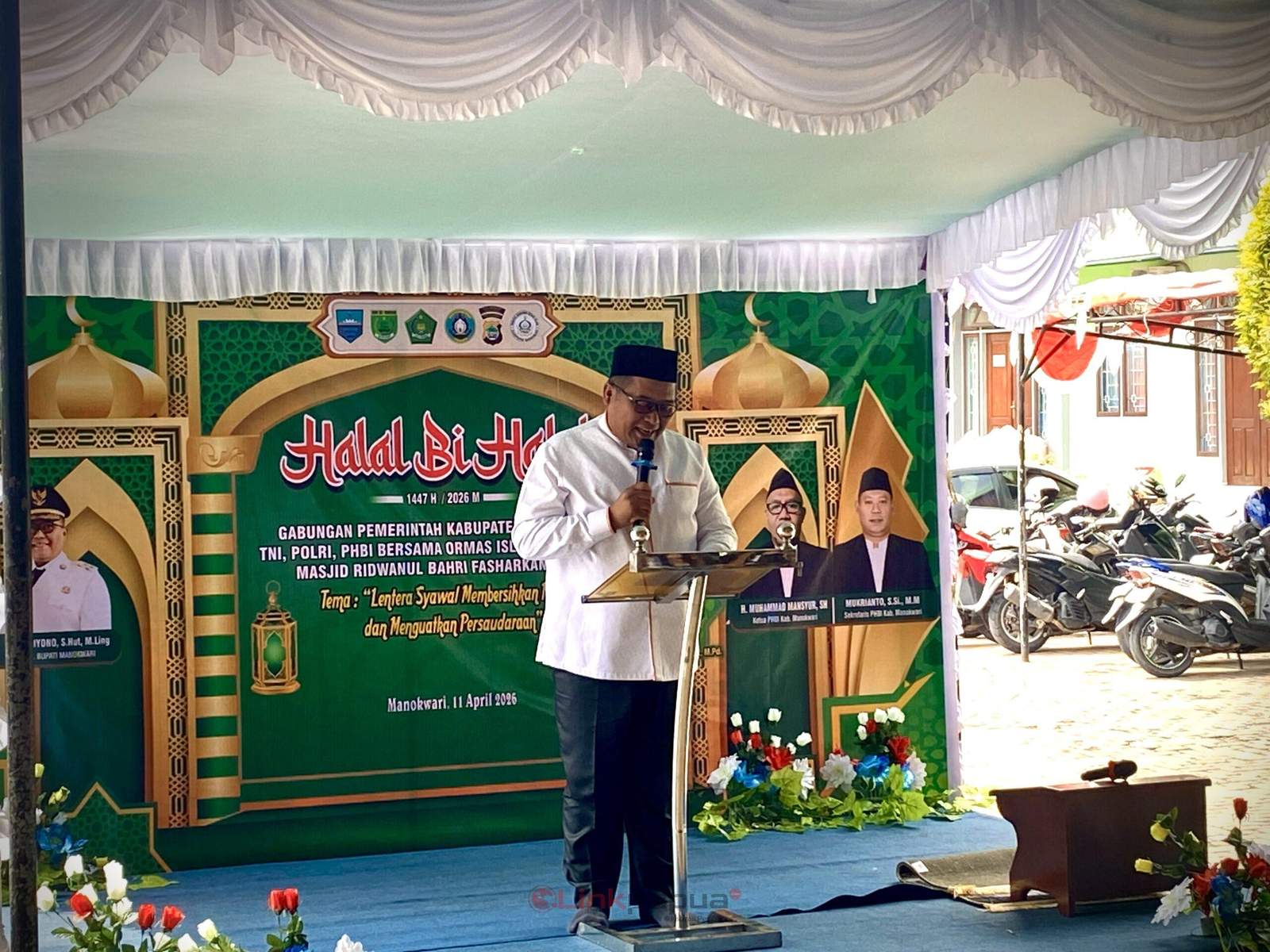 MANOKWARI, Linkpapua.id– Panitia Hari Besar Islam (PHBI) Manokwari menggelar kegiatan halal bihalal bersama Pemerintah Kabupaten Manokwari serta unsur TNI-Polri sebagai momentum mempererat silaturahmi dan memperkuat kebersamaan pasca Idulfitri.