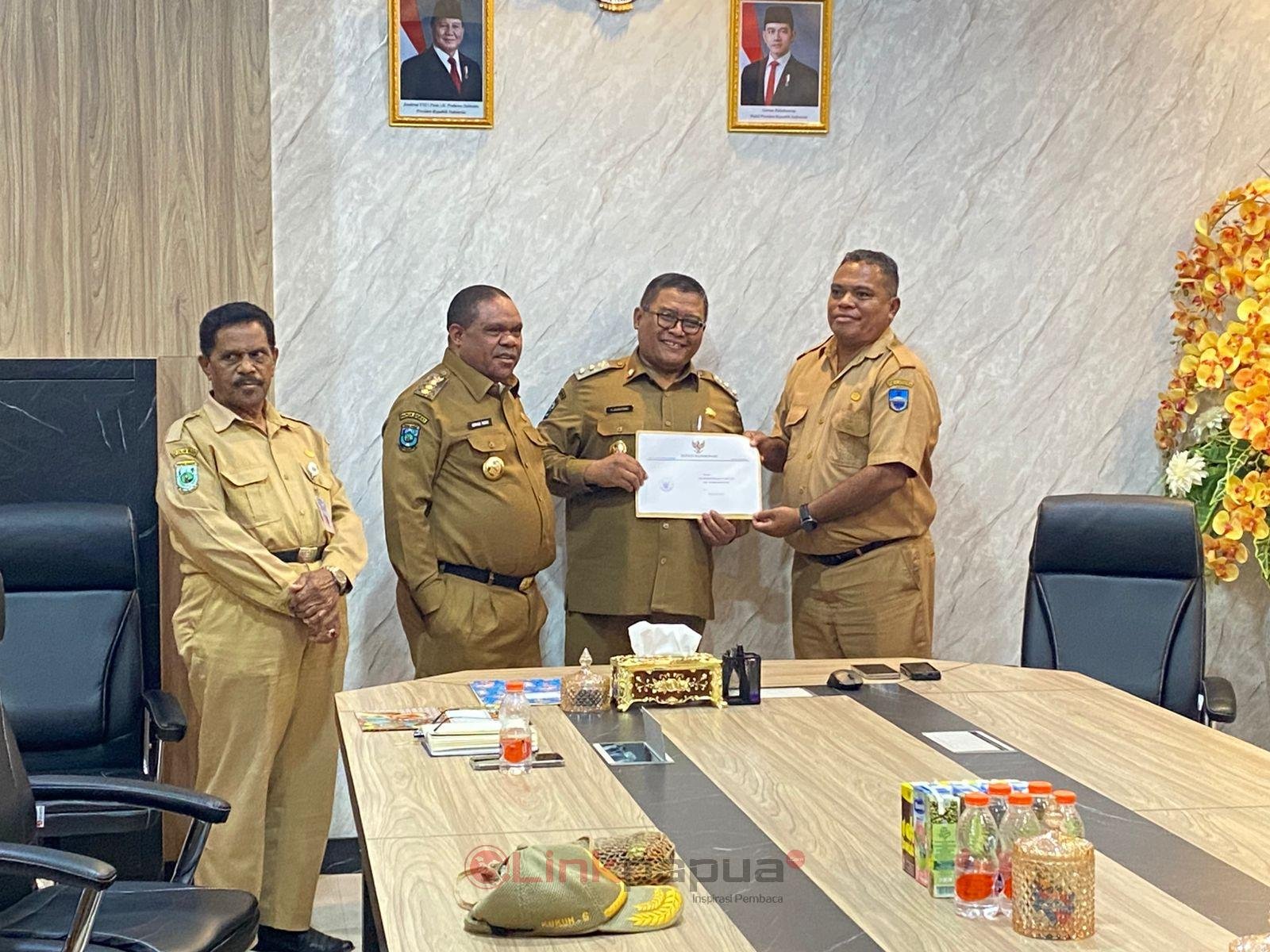 MANOKWARI, Linkpapua.com- Bupati Manokwari menyerahkan SK PLT Kepala Dinas Pertanian, Peternakan, Perkebunan, Ketahanan Pangan, dan Hortikultura Kabupaten Manokwari kepada Sergion Rahawarin untuk menggantikan Kukuh Saptoyudo pada Senin (5/5/2025) di kantor Bupati Manokwari.