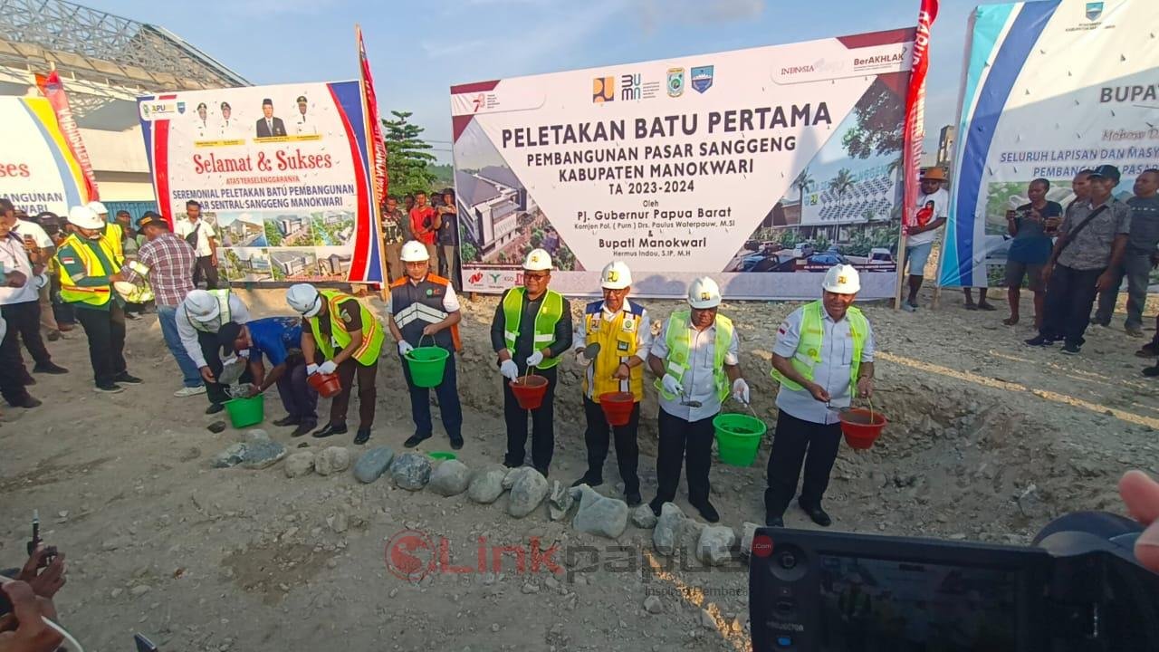 MANOKWARI, LinkPapua.com – Bupati Manokwari, Hermus Indou, dan Penjabat (Pj) Gubernur Papua Barat, Paulus Waterpauw, Rabu (25/10/2023), melakukan seremoni peletakan batu pertama untuk memulai pembangunan Pasar Sentral Sanggeng.