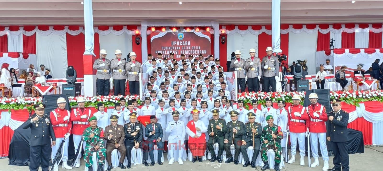 TELUK BINTUNI,LinkPapua.com– Pemkab Teluk Bintuni menggelar upacara HUT Proklamasi ke-79 RI di lapangan Gelanggang Argosigemerai SP V Distrik Bintuni Timur, Sabtu 17 Agustus 2024. HUT tahun ini akan menjadi momentum terakhir bagi Petrus Kasihiw-Matret Kokop sebagai Bupati dan Wabup Teluk Bintuni.