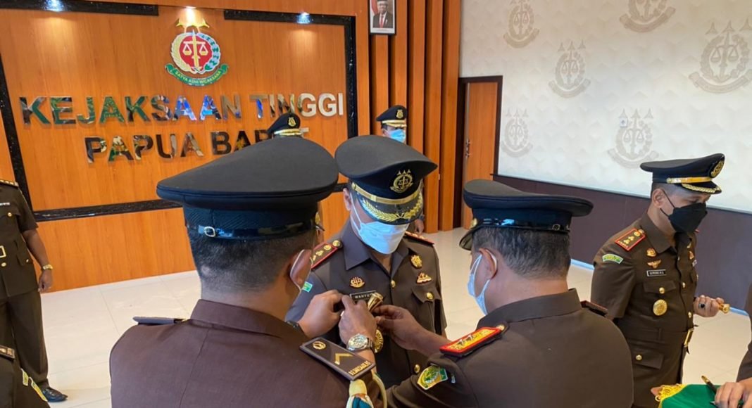 Pelantikan dan serah terima jabatan dipimpin Kepala Kejaksaan Tinggi Papua Barat, Dr.W Lingitubun, SH MH Senin (9/8-2021).