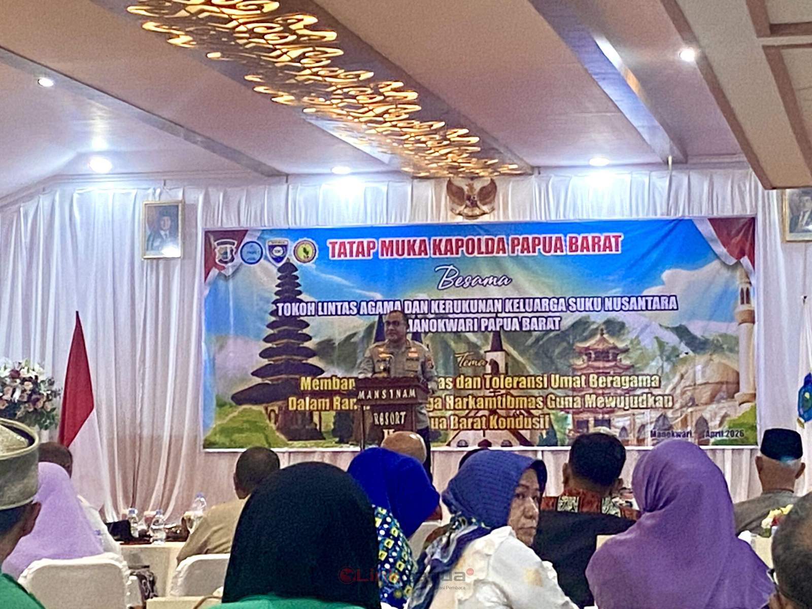 MANOKWARI, Linkpapua.id – Kepala Kepolisian Daerah (Kapolda) Papua Barat Irjen Pol Alfred Papare menggelar tatap muka bersama tokoh lintas agama dan Kerukunan Keluarga Suku Nusantara sebagai upaya memperkuat keamanan dan ketertiban masyarakat (kamtibmas) di wilayah Papua Barat pada Rabu (15/4/2026).