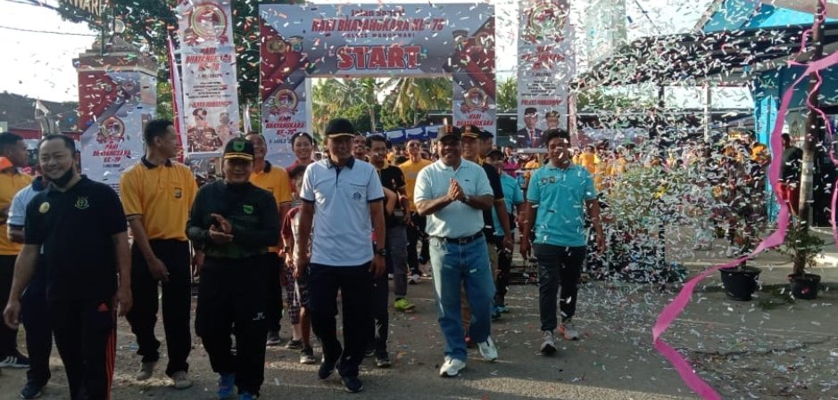 Kapolres Manokwari, AKBP P. Herman Gultom, melepas peserta jalan santai. Peserta mendapatkan kupon yang nantinya diundi untuk mendapatkan sejumlah hadiah menarik, seperti kulkas, kipas angin, dan berbagai peralatan rumah tangga lainnya.