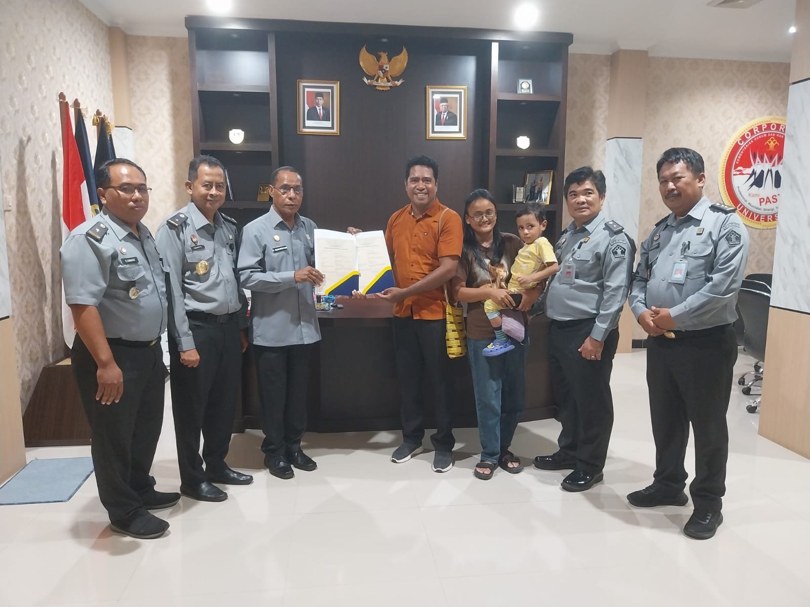 Turut hadir mendampingi Kakanwil di antaranya Kepala Divisi Administrasi, Edward James Sinaga, Kepala Divisi Pelayanan Hukum dan HAM, Agung Damarsasongko, Kepala Bidang Pelayanan Hukum, Soleman Lilingan dan Kepala Sub Bidang Pelayanan Kekayaan Intelektual, Achmad Djunaidi. (*/rls)
