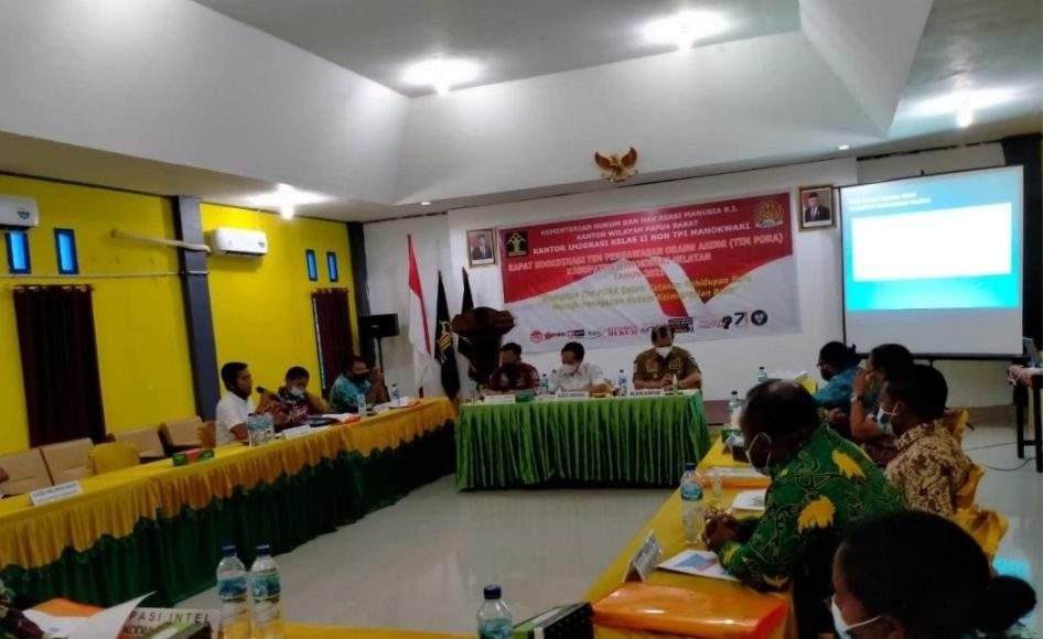 Olehnya, Kementerian Hukum dan Hak Asasi Manusia RI Kanwil Papua Barat dan Kantor Imigrasi Non TPI Manokwari menggelar Rapat Koordinasi Tim Pengawasan Orang Asing (Tim Pora) di Kabupaten Manokwari Selatan yang dilaksanakan di aula Srikandi di Ransiki, Kamis (20/5/2021).
