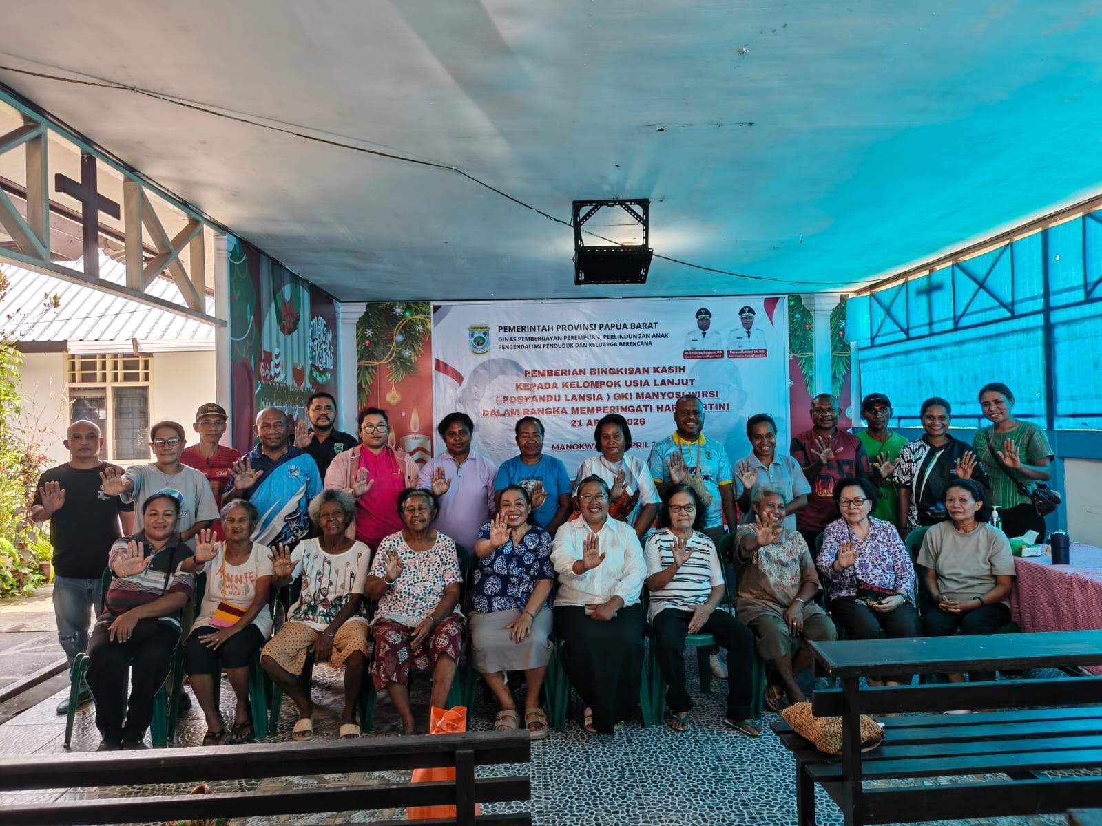“Kami mengucapkan terima kasih kepada Ibu Kepala Dinas P3AP2KB beserta jajaran yang telah hadir dan menunjukkan kepedulian terhadap lansia di sini, juga di Kabupaten Manokwari dan Provinsi Papua Barat,” ujar Ketua Jemaat GKI Manyosi Wirsi, Pdt M Rumfabe, usai menerima bingkisan kasih, Sabtu (18/4/2026).