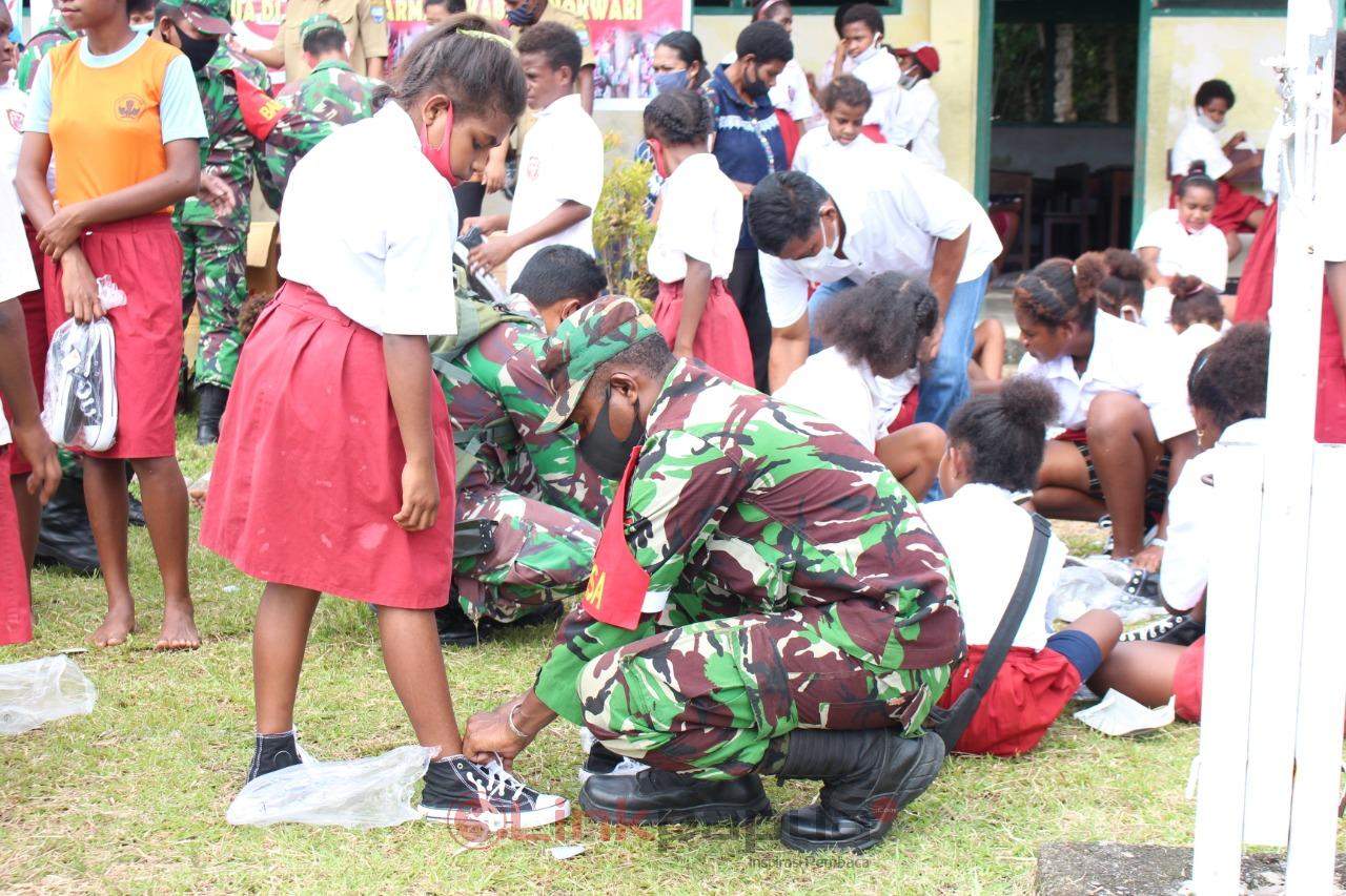 Kodim 1801/Manokwari Serahkan Bantuan Seragam dan Sepatu Sekolah Bagi siswa di Warmare