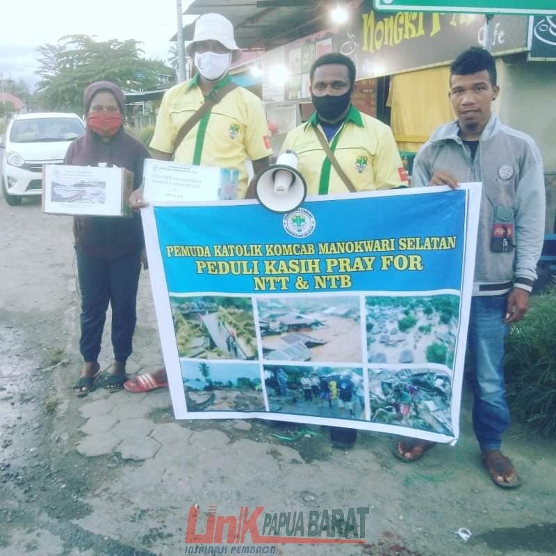 MANOKWARI, Linkpapua.com – Komisariat Cabang (Komcab) Pemuda Katolik Manokwari Selatan belum lama ini melakukan penggalangan dana untuk korban bencana alam di Nusa Tenggara Timur (NTT). Hasil penggalangan dana yang digelar Rabu lalu berhasil mengumpulkan Rp4.100.000 yang langsung disumbangkan ke pengurus Flobamora Papua Barat.