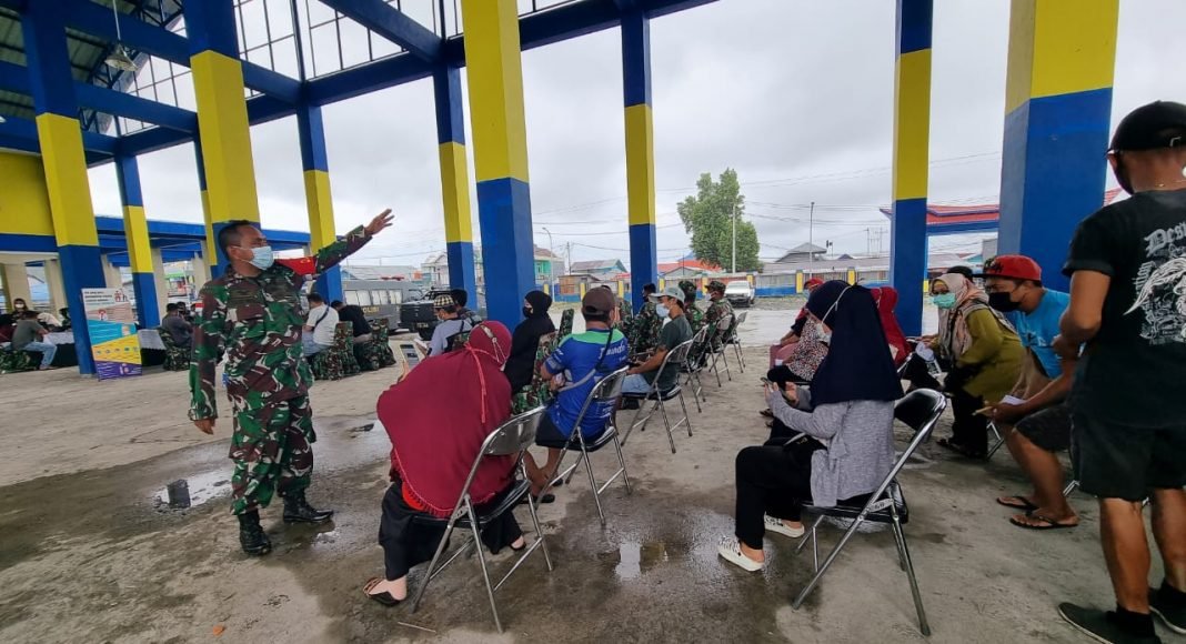 Cara itupun berhasil. Warga berbondong-bondong mendatangi lokasi vaksinasi massal yang digelar Komando Daerah Militer (Kodam) XVIII/Kasuari di Terminal Pasar Wosi, Kabupaten Manokwari, Papua Barat, Sabtu (3/7/2021)