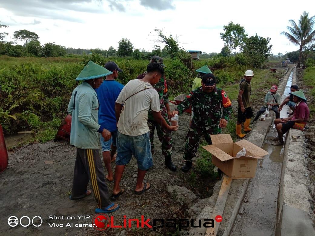 MANOKWARI, Linkpapua.com- Koramil 1801-06/Masni berbagi takjil kepada pengguna jalan yang melintas di depan Makoramil 1801-06/Masni Kabupaten Manokwari, Provinsi Papua Barat, Jumat (07/05/2021). Ini sebagai wujud kepedulian TNI terhadap kebutuhan rakyat khususnya di bulan suci ramadhan 1442 H.