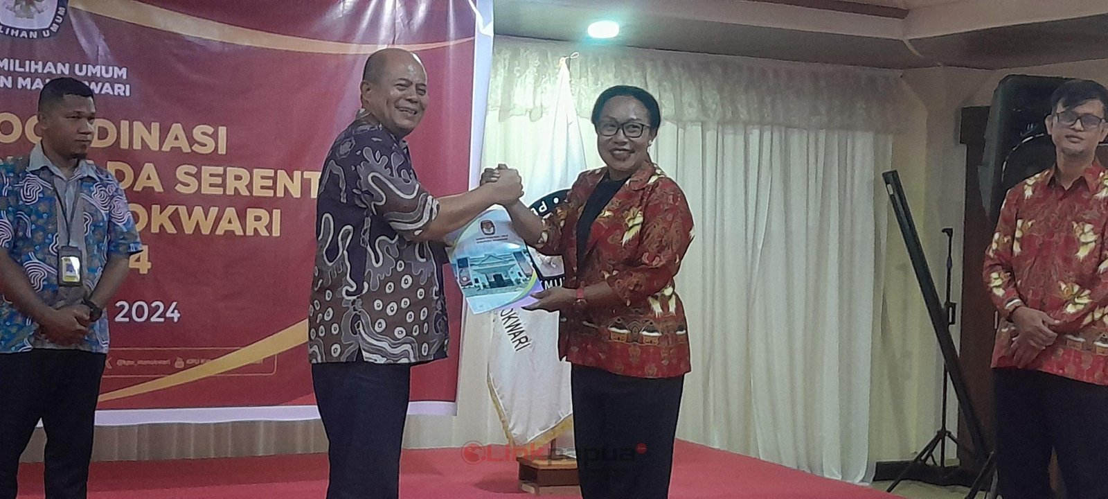 MANOKWARI, Linkpapua.com– Komisi Pemilihan Umum (KPU) Manokwari menggelar Rapat Koordinasi (Rakor)tahapan pemilihan kepala daerah (Pilkada) dengan pimpinam Forkopimda Manokwari Jumat (3/5/2024) di Manokwari.