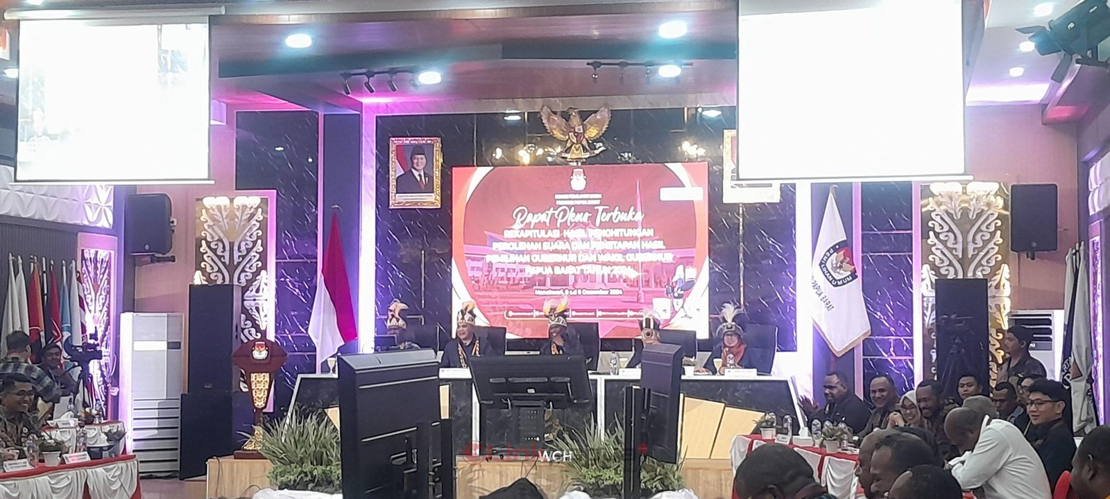 MANOKWARI, Linkpapua.com– Komisi Pemilihan Umum (KPU) Papua Barat menggelar rapat pleno terbuka untuk Rekapitulasi Hasil Penghitungan Perolehan Suara Pemilihan Gubernur – Wakil Gubernur pada Minggu (8/12/2024).