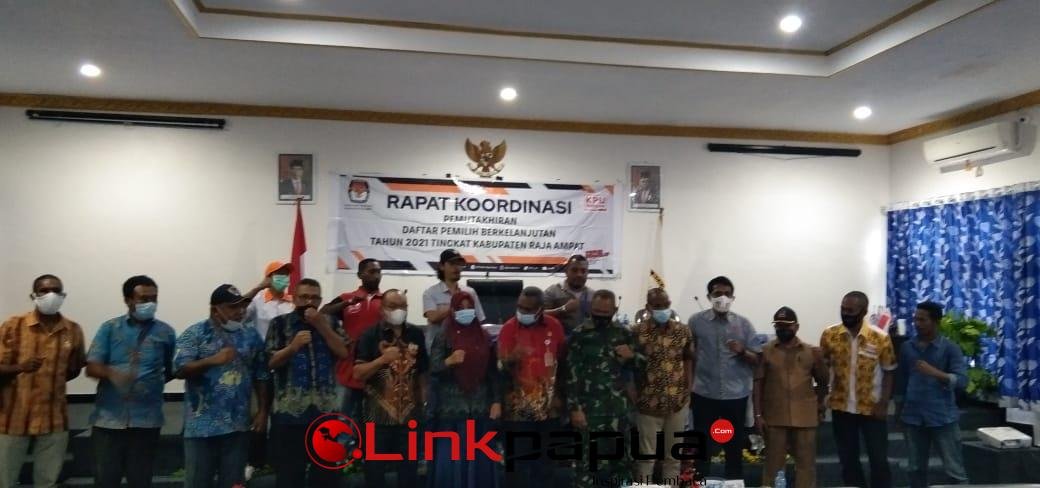 WAISAI, Linkpapua.com – Komisi Pemilihan Umum (KPU) Kabupaten Raja Ampat menggelar Rapat Koordinasi (Rakor) Pemuktahiran Daftar Pemilih Berkelanjutan (PDPB) Tahun 2021 Tingkat Raja Ampat di Aula KPU Raja Ampat, Kamis (3/6/2021).