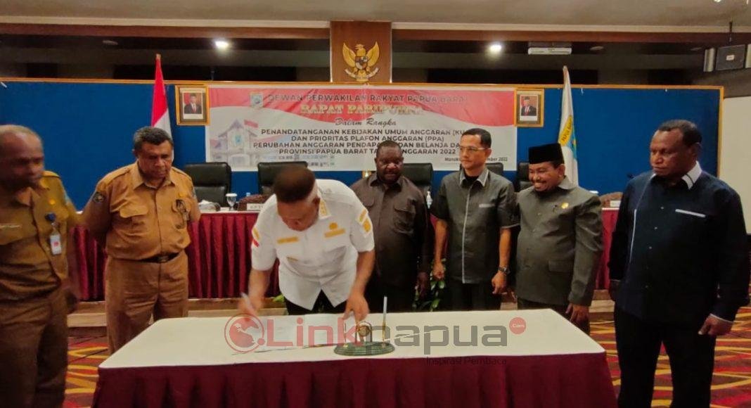 Penandatanganan nota kesepakatan pada rapat paripurna yang digelar DPR Papua Barat di salah satu hotel di Manokwari, Selasa (27/9/2022) malam, ini telah melalui pembahasan antara Badan Anggaran (Banggar) DPR Papua Barat dan TAPD.