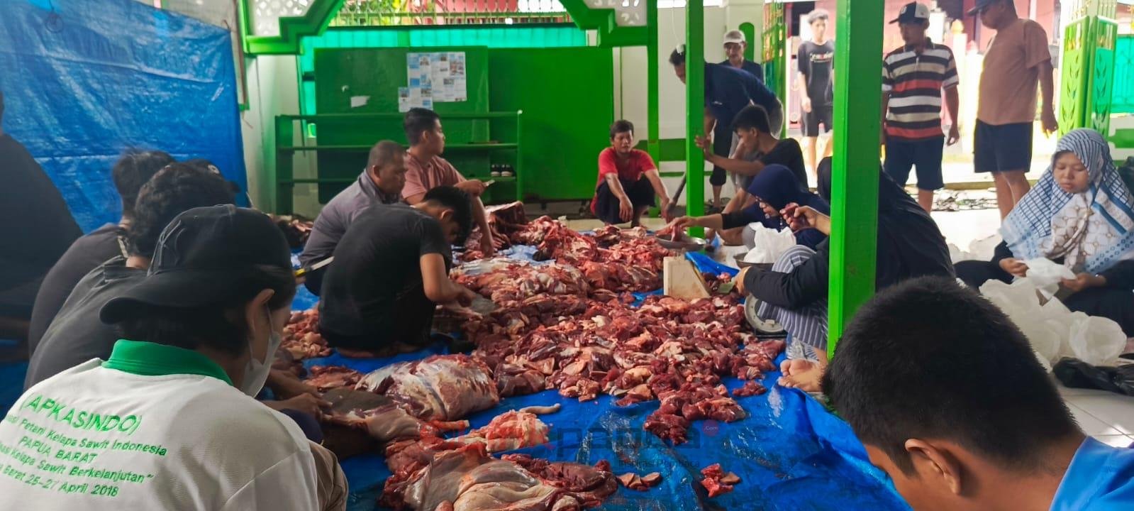 MANOKWARI, LinkPapua.com – Jemaah Masjid Nurul Qolbi Amban Permai, Kabupaten Manokwari, Papua Barat, melaksanakan pemotongan hewan kurban usai pelaksanaan salat Idul Adha, Senin (17/6/2024).