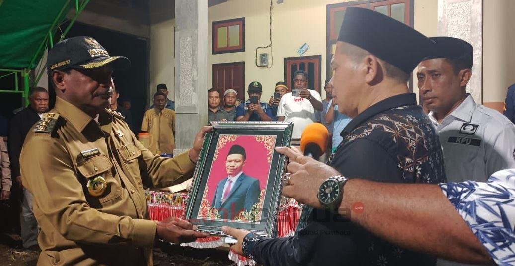 TELUK BINTUNI, LinkPapua.com – Bupati Teluk Bintuni, Petrus Kasihiw, memimpin upacara pelepasan jenazah Lukman Hasan, Ketua KPU Teluk Bintuni, yang meninggal dunia, Senin (4/9/2023). Upacara berlangsung di rumah duka, Kampung Bumi Saniari, Distrik Manimeri.