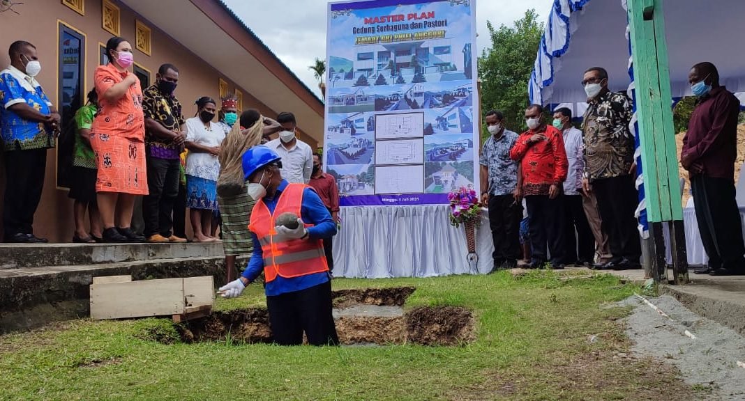 “Rumah pastori dan gedung serbaguna bagi anak sekolah minggu perlu dibangun, karena merupakan bagian penting dalam pembangunan Sumberdaya Manusia Papua. Ini akan menjadi sarana yang baik dalam pelayanan pendidikan keagamaan ditingkat dasar,” kata Dominggus saat meletakan batu pertama (groundbreaking) pembangunan tersebut.