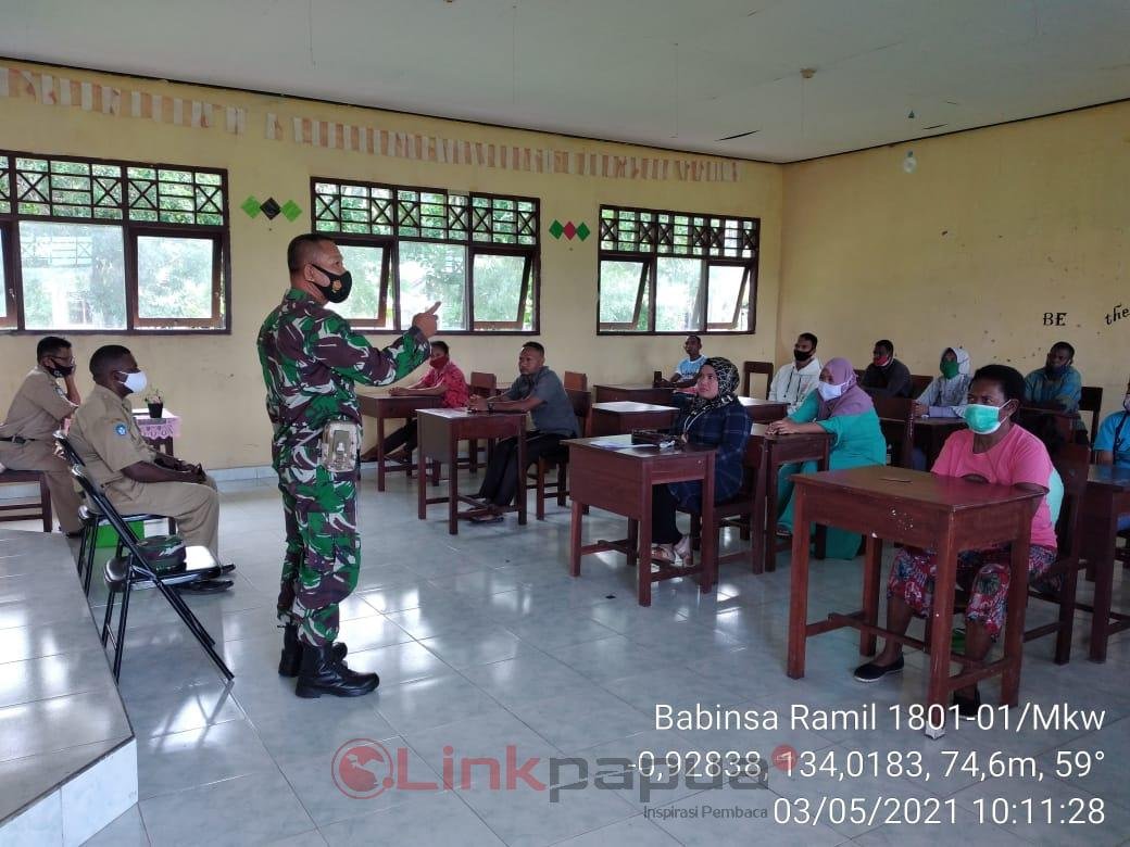 Untuk mengantisipasi kebiasaan konvoi SMA khususnya di Distrik Manokwari Selatan, Danpos Ramil Manokwari Selatan, Pelda Nurji Wahono bersama Babinsa Arfai, Serda Basroil gelar pertemuan dengan orang tua siswa serta pelajar kelas XII SMA Negri 03 Arfai, Kabupaten Manokwari, Papua Barat, Senin (03/5/2021). Pertemuan ini untuk memberikan edukasi dan antisipasi kovoi pasca pengumuman kelulusa.