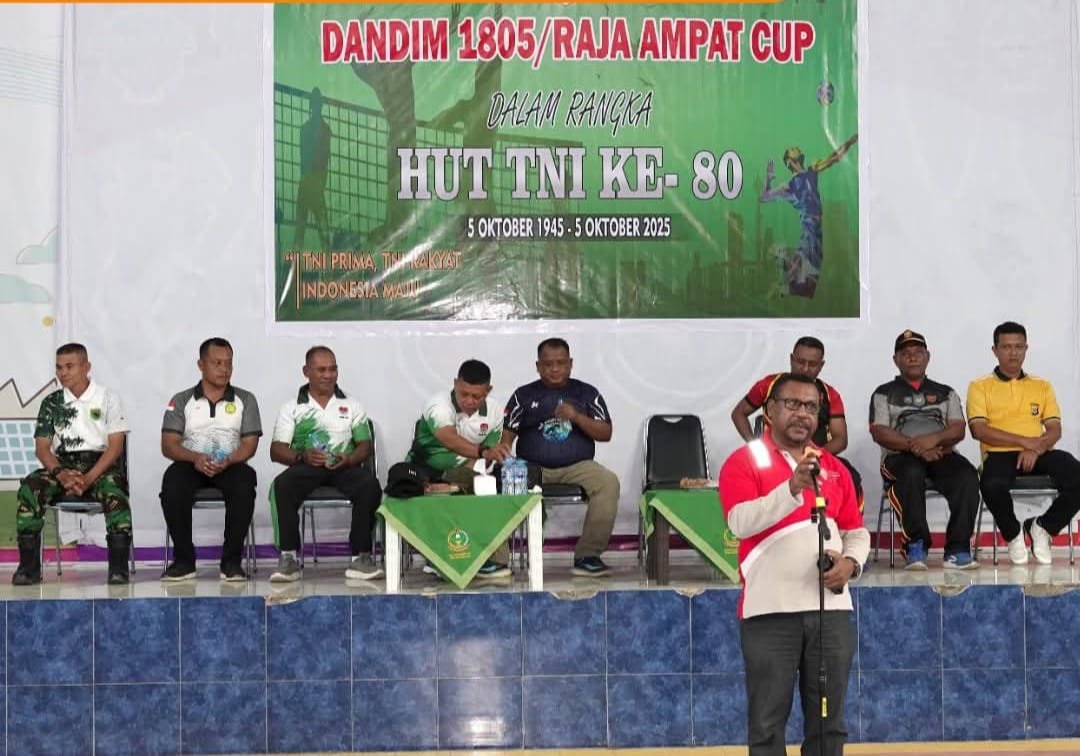 RAJA AMPAT, LinkPapua.id – Pemerintah Kabupaten (Pemkab) Raja Ampat, Papua Barat, ikut ambil bagian dalam perayaan HUT ke-80 TNI. Hal ini ditandai dengan dibukanya pertandingan bola voli yang diikuti berbagai elemen masyarakat, termasuk pelajar.