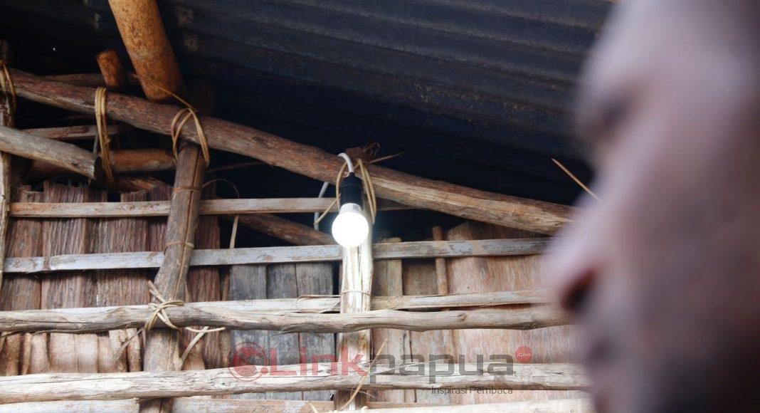 Yosephina Indou, mengucap syukur dan terima kasih atas penerangan yang dihadirkan Pemerintah di Kampung Coisi, Distrik Minyambouw, baginya ini sebuah berkat dan kado Natal yang diberikan.