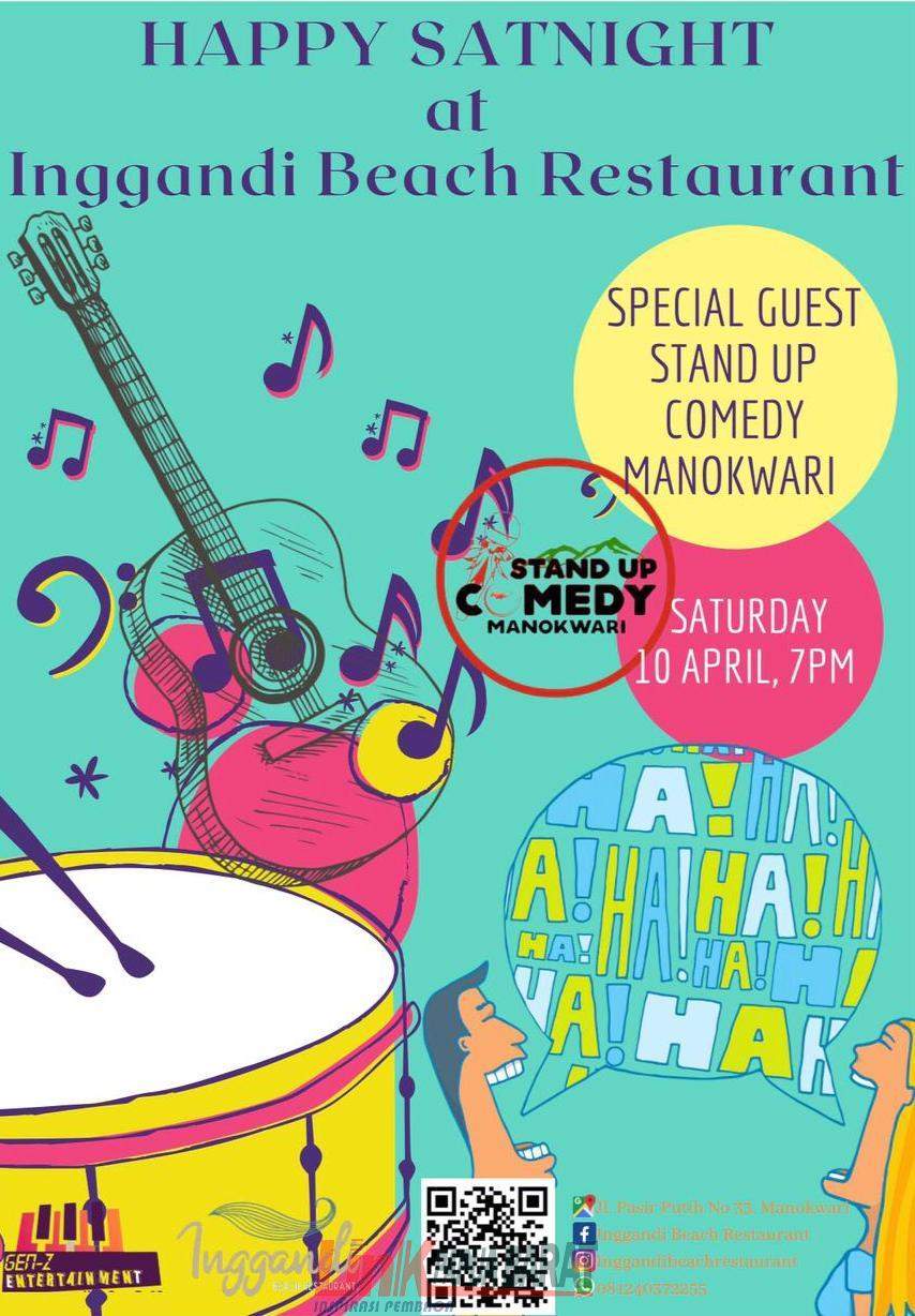 Untuk malam minggu ini Sabtu, 10 April 2021 Pukul 19.00 Inggandi Beach Restaurant mengundang special guest dari Stand Up Comedy Manokwari.