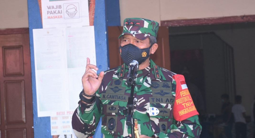 MANOKWARI, Linkpapua.com- Pangdam XVIII/Kasuari, Mayjen TNI I Nyoman Cantiasa, S.E., M.Tr. (Han), mengajak masyarakat untuk mempersenjatai tubuh dari ancaman penyebaran Covid-19 dengan vaksin. Selain tentunya taat protokol kesehatan dan menjaga imun.