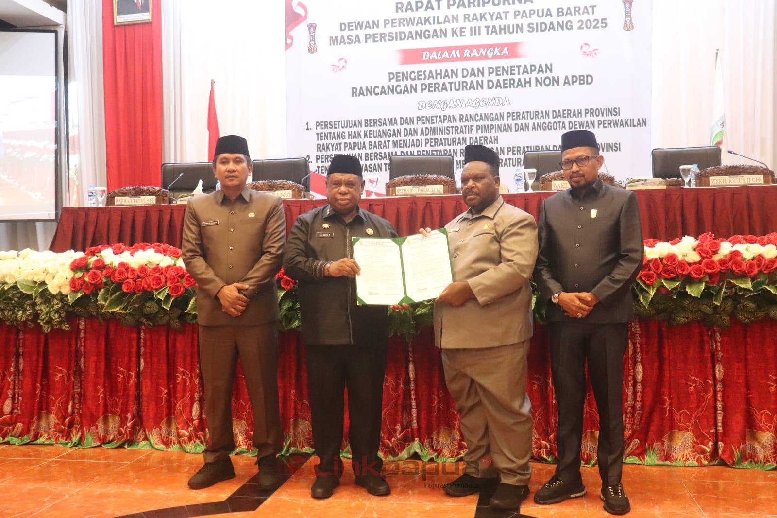 MANOKWARI, LinkPapua.id – Pemerintah Provinsi dan DPR Papua Barat mengesahkan Perda tentang Hak Keuangan dan Administratif Pimpinan maupun Anggota DPR Papua Barat serta Perda Kawasan Tanpa Rokok (KTR). Pengesahan dua regulasi ini kini menanti pengawasan ketat dari publik agar pelaksanaannya tetap transparan dan akuntabel.