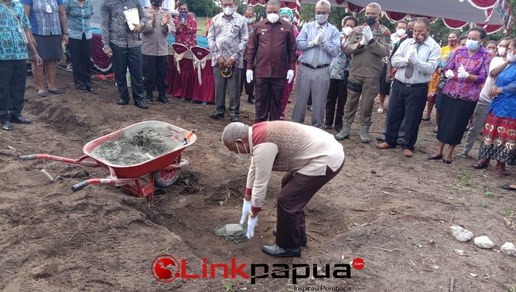 MANOKWARI, Linkpapua.com – Gubernur Papua Barat, Dominggus Mandacan, melakukan peletakan batu pertama pembangunan gereja GPdI Jemaat Tamariska Pami, Distrik Manokwari Utara, Kamis (3/6/2021).