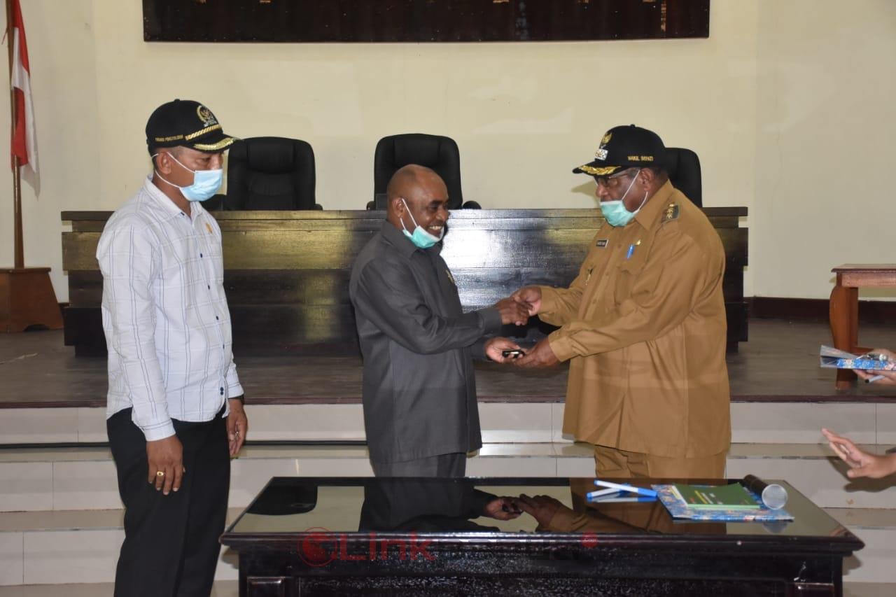MANOKWARI,Linkpapuabarat.com-Dalam rangka menunjang kegiatan operasional DPRD Kabupaten Teluk Bintuni, Pemerintah setempat memberikan kendaraan dinas kepada Ketua dan Wakil Ketua II, di aula Sasana Karya, Senin (07/12/2020).